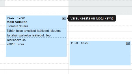- Tuki asiakkaan osoitteen ja lisätietojen näyttämiseen varausnäkymässä. Valittavissa asetuksella.