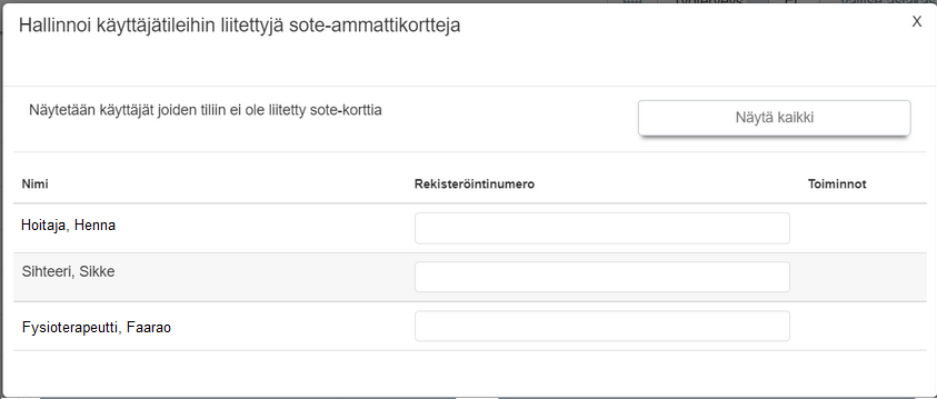Henkilökorttien / Ammattikorttien hallinnointi ylläpitäjän toimesta
