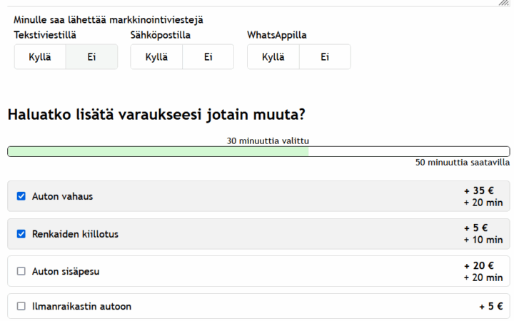Internet-ajanvarausjärjestelmän asiakaspuolen varaussivulla asiakkaalle on nyt myös mahdollista rastittaa varauksen j...