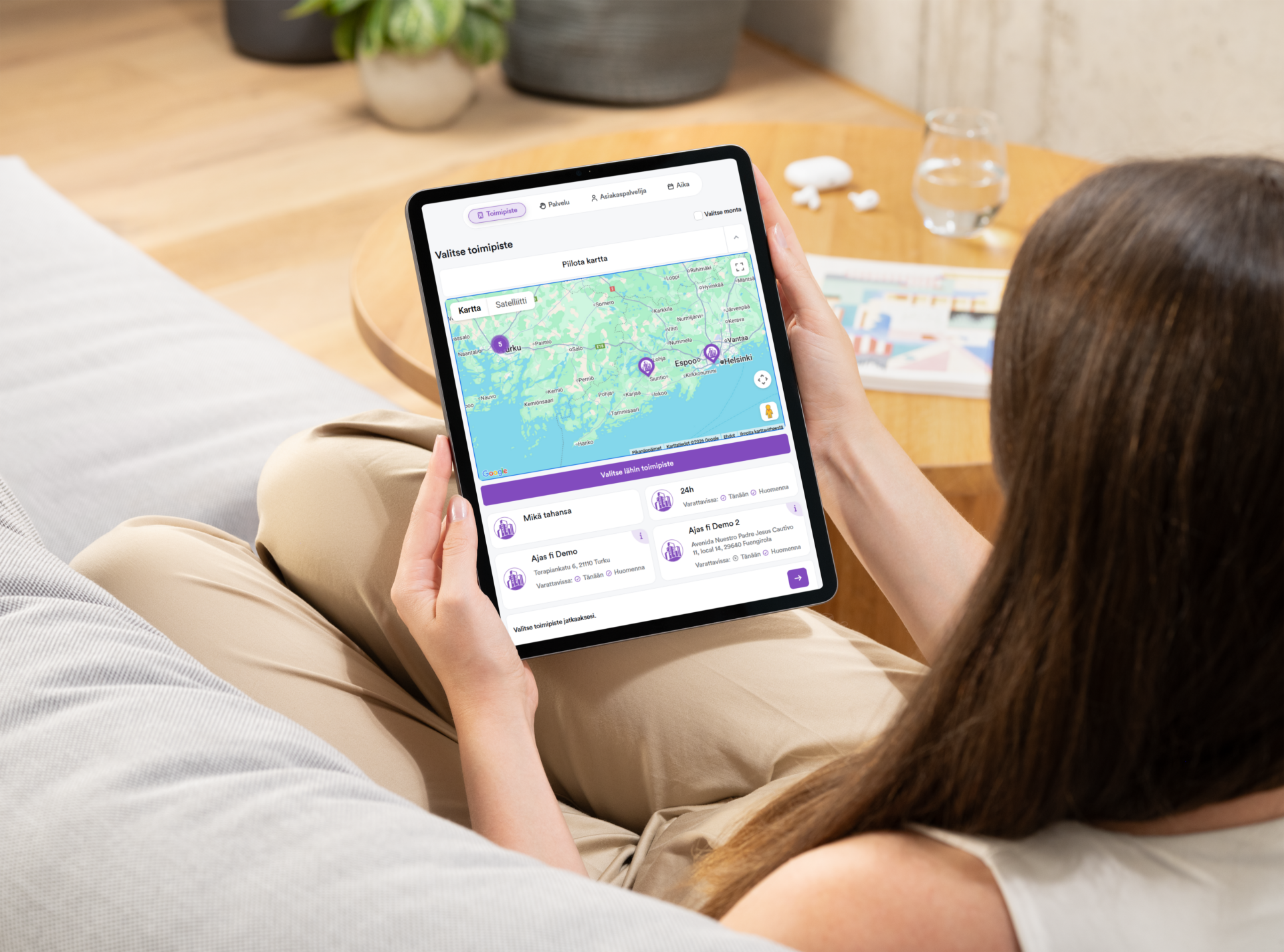 Asiakas näkee aina ajantasaiset vapaat ajat ja valitsee niistä itselleen sopivimman. Varaus tehdään nopeasti ja vaivattomasti – usein alle minuutissa.